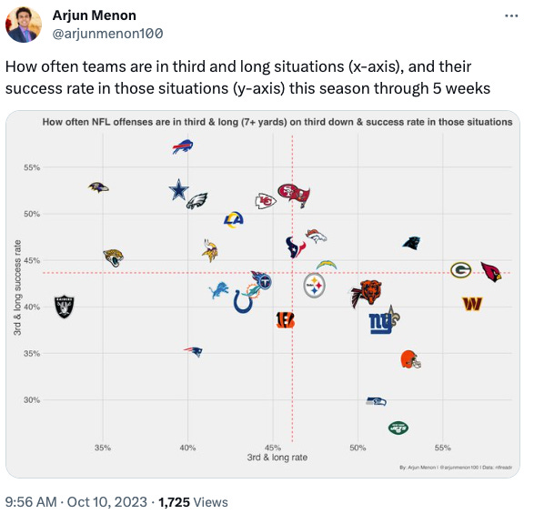 For example, the Seahawks have one of the highest third-and-long rates in the NFL and the second-worst rate of converting those plays.
