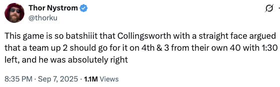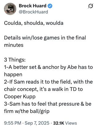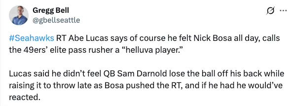 I'm still up on our performance. The 49ers, like it or not, are still a really really well coached team. To go toe-to-toe with them is a step forward. Why I fully believe by the rematch we'll be walking away laughing at a 2-score win.