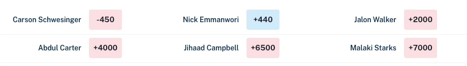 Nobody else is even in talks. The irony is that the Falcons have the top two sack guys (Jalon Walker, James Pearce) and the top interception guy (Xavier Watts) and Atlanta’s defense is still bad. The last two winners have been pass rushers (Will Anderson, Jared Verse) but looks like it’s going to be a linebacker or Emmanwori this year.