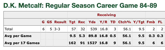 Metcalf averaged 66 yards per game as a healthy 27-year-old