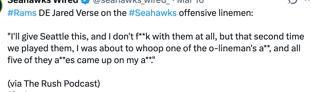 This is further confirmed by the realization that Seattle’s other picks since 2022 are at best “relatively good values” and at worst Christian Haynes, with a couple of exceptions like Abe Lucas and A.J. Barner. That’s not meant as a diss, it’s the reality of most prospects who aren’t given “first round grades”.