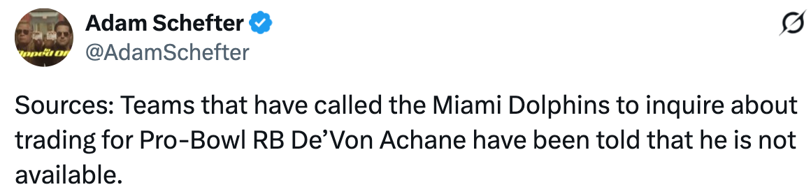 On Wednesday, Schefter tweeted that the Dolphins aren’t trading Achane.