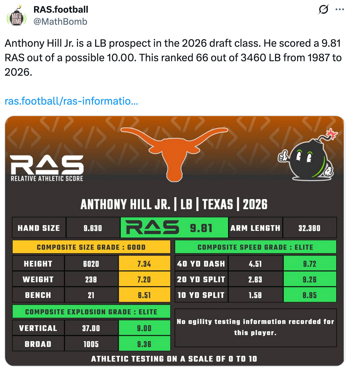 I really haven’t considered ILB at all with only 4 picks. If the Seahawks stick and pick at 32, I think that taking Hill there would be a reach. But at 64 Hill would be a high value pick. However if there’s an equal high value pick at CB, Edge, Safety or maybe RB,(Price) I think positional needs would trump Hill. If only we had 4 day 2 picks like last year. (Sigh)