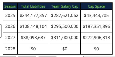 Actually, not really. If anything, 2025 is for 2026. Because teams usually pay discounted rates in the beginning of new veteran contracts, any big free agent signings should be relatively cheap in 2025 and see their cap hits balloon in 2026 and 2027.