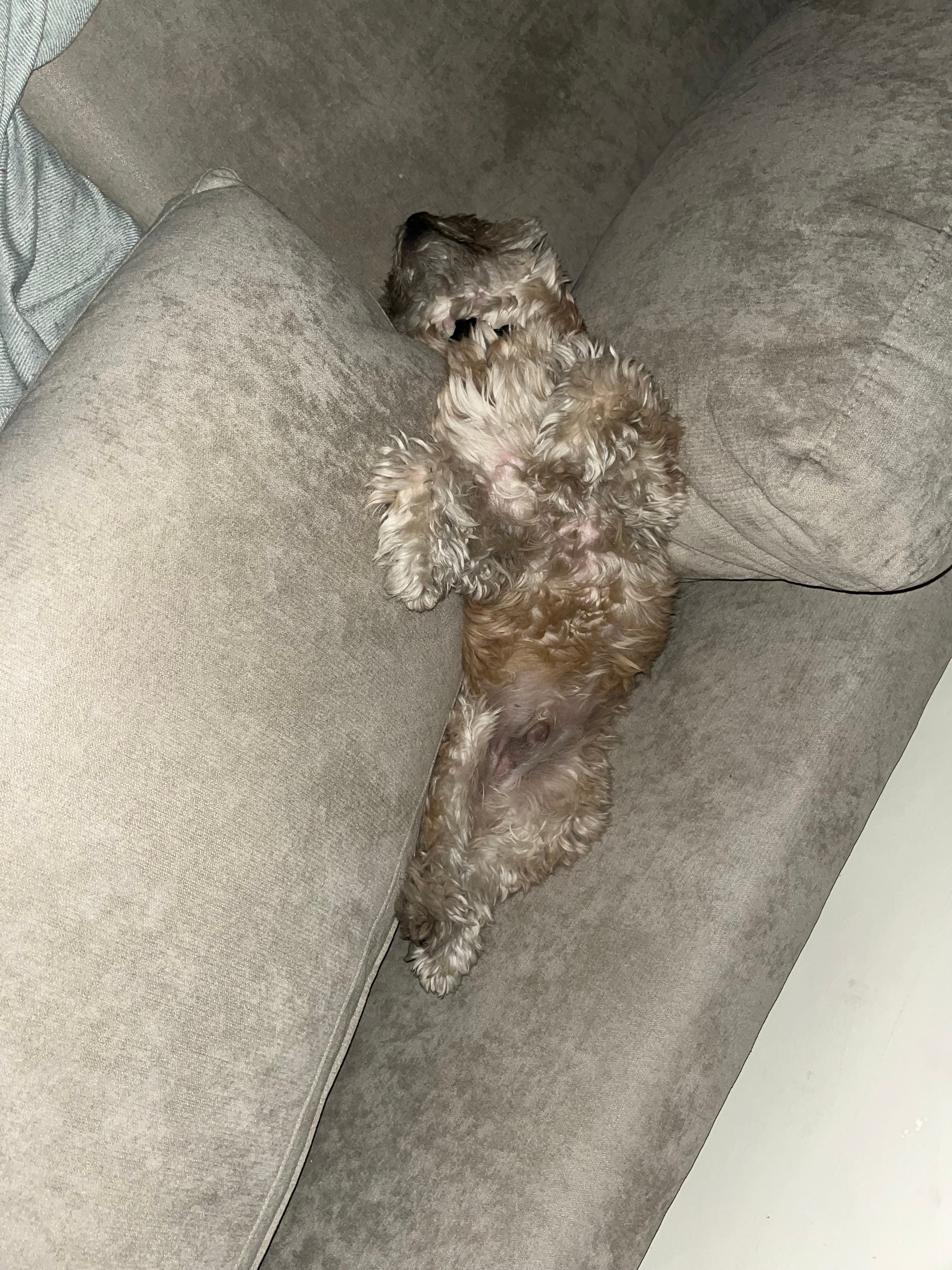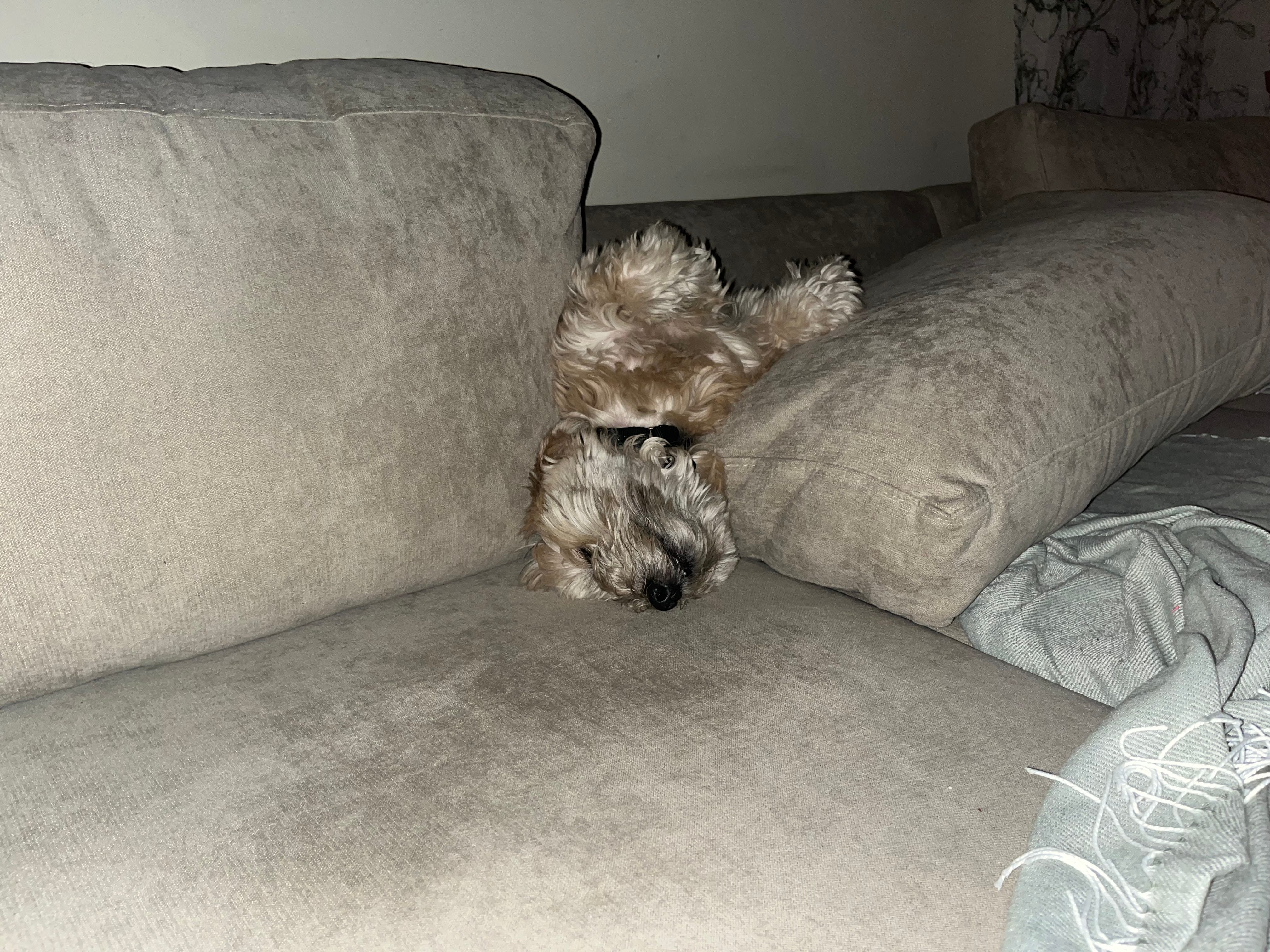 I go out to the living room last night and I was legitimately worried at first by what I saw. Don’t be confused by the flash, it was dark in the living room, do my eyes deceive me? In the words of Sean Penn in Mystic River, “Is that my dog in there?!! Is that my dog in there?!!?!”