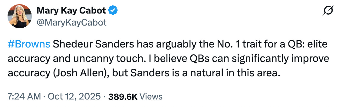 -The Browns really gave Sanders seven starts last season and still claim to be giving him a chance to be the starter in 2026. (He’s one of the worst quarterbacks to ever start more than a game in the NFL and that shouldn’t be disputed.)