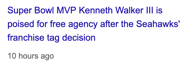 How many predictions has Seaside Joe gotten wrong this year already? I would have predicted a Kenneth Walker franchise tag if the Seahawks didn’t beat me to the news that it wasn’t going to happen. That’s just one, there will be many more.
