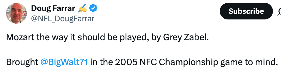 Just let this be a reminder that when Grey Zabel gets zero votes for rookie of the year but Luther Burden or Kyle Monangai finish with a few points just because they physically carried the ball for a few years instead of paving the way for a 100-yard runner or protected a passer with the fourth-best pressure rate in the NFL, it’s not because Seattle’s rookie wasn’t the most valuable.