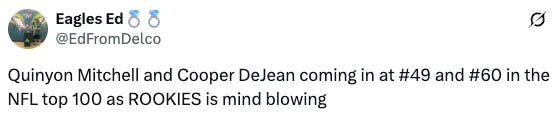 The Eagles beat a Chiefs team that does have Trent McDuffie, but Kansas City was okay trading L’Jarius Sneed after winning back-to-back Super Bowls and they didn’t even replace him with anybody. Without a good defensive coordinator like he had in KC, Sneed’s tenure with the Titans has been a disaster thus far.