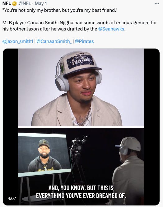 Brugler mentions “eight years old” as the key moment for Smith-Njigba, probably because that’s when he started running up “Walmart Hill” with his father and older brother. As written in The Columbus Dispatch in 2021, Maada notes that as opposed to Canaan, Jaxon loves to work out: