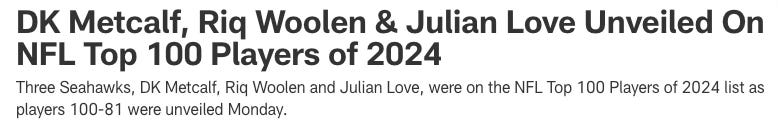 That’s just a really dumb list, but the respect does suggest that Love has been at worst a top-10 safety since coming to Seattle. Macdonald got even more out of Love than Carroll did, he put Bryant in position to be a long-term starter either with the Seahawks or another team, and Schneider has now raised the ceiling tremendously by drafting Nick Emmanwori.