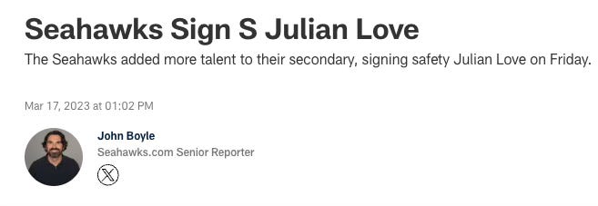 And luckily for Seattle, they didn’t have to focus as much on their whiffs because a) the combined amount paid to all of those players is still less than one Christian Wilkins and b) they were busy re-upping several of their outside veteran home runs … including Julian Love.