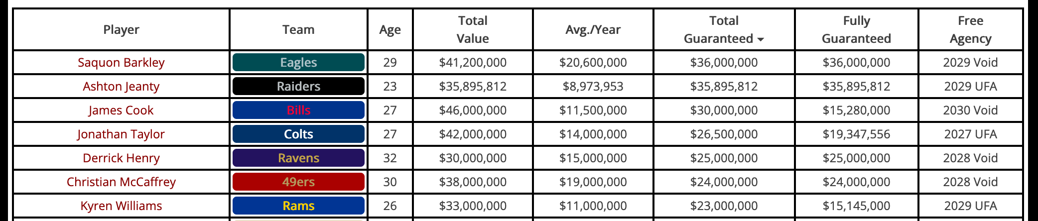 James Cook, drafted the same year and round as Walker, signed a four-year, $46 million extension with the Bills in 2025 that paid $30 million guaranteed.