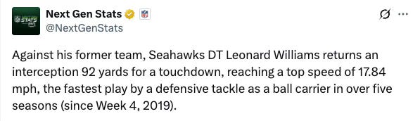 By the way, the Seahawks went 10-6 with Williams, 0-1 without Williams, and Seattle was 6-0 when he got at least one sack in 2024. So in terms of “most valuable players”, Williams has a great argument for himself among all DEFENSIVE players in the league.
