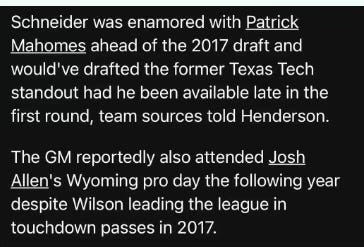 Schneider could also be the best-suited GM in the NFL when it comes to identifying who those unique exceptional quarterbacks are, if you believe every John Schneider draft rumor that you’ve ever heard.