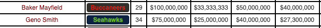 But the lesson that a lot of people take from these numbers is that quarterbacks like Baker and Geno should be paid MORE to match their overpaid peers because it’s perceived as unfair, completely ignoring the part about being “overpaid” and hurting their teams chances of competing for the playoffs.