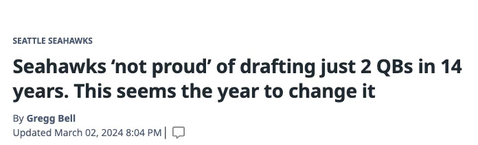 “Sometimes you wonder whether Seattle would be better off at 4-13 than 9-8 in order to stock the pantry with high draft picks”