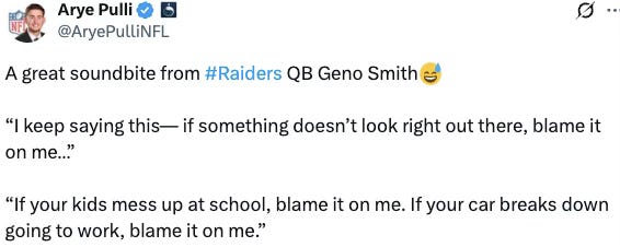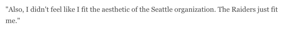 But that’s not the quote I’ll always remember. “I didn’t fit the aesthetic of the Seattle organization. The Raiders just fit me.” - Geno Smith.