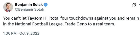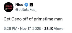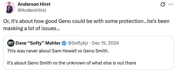 (“What on Earth are you Geno-haters watching?” is such strong analysis!)