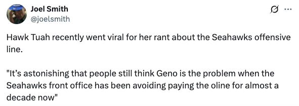 The love for quarterbacks runs so deep that oftentimes they will even get priority over the entire organization despite the fact that players come and go but the franchise will stay in Seattle for as long as we can help it. Sometimes this quarterback adoration led to popularizing a narrative that “the Seahawks are holding back Geno Smith” and could not possibly be the other way around.