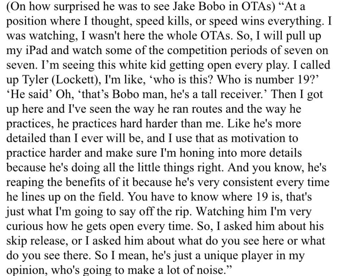 Quite an endorsement for #19. This might be the year that my fav camp guy turns out to be an actual player.