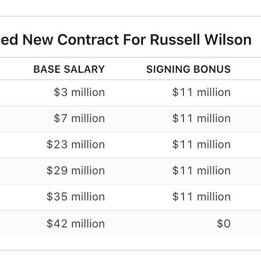 Russell Wilson signed a four-year, $87.6 million extension with Seattle a month later.