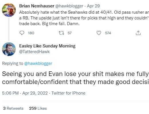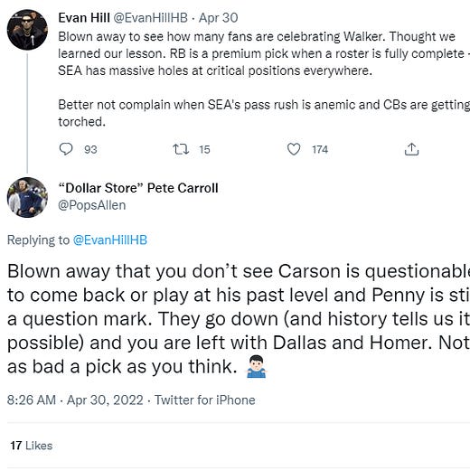 It’s not necessarily Walker himself who will change the anti-RB narrative on Seahawks Twitter; it will be the ratios that do that and the ratios have been pouring in since the pick was made.
