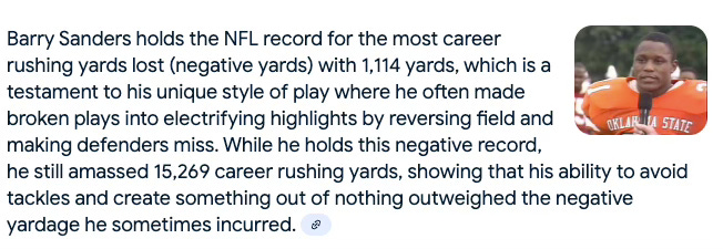 I’m not comparing Walker to Barry Sanders, or even Saquon Barkley (who had 8 runs in Week 1 for 1 or fewer yards and that’s behind the Eagles offensive line), but the difference between a good game and a terrible game could just be that Kenneth Walker didn’t get enough opportunities. Barkley had a historic 2024 season and he was still stuffed for 0 or negative yards on 90 rushing attempts!
