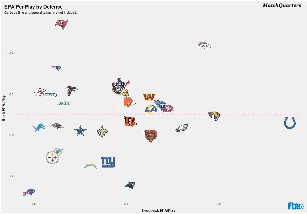 This chart shows that the Seahawks had the fourth-best EPA per play run defense in Week 1: