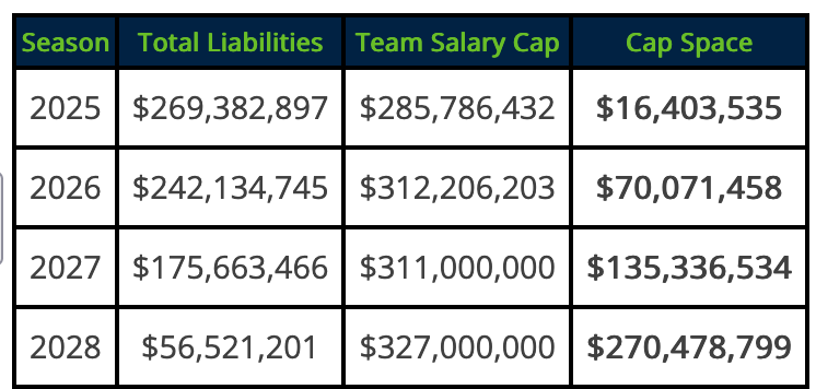 Now (NFL cap is only a projection):