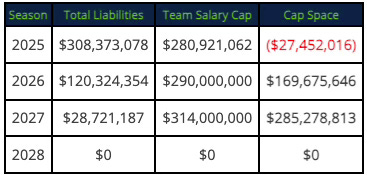 As such, Seattle is still projected to be $27.5 million over the 2025 salary cap and the first decision John Schneider has to make will be what to do with Smith: $44.5 million cap hit if he stays OR $31 million in cap savings if he’s released.
