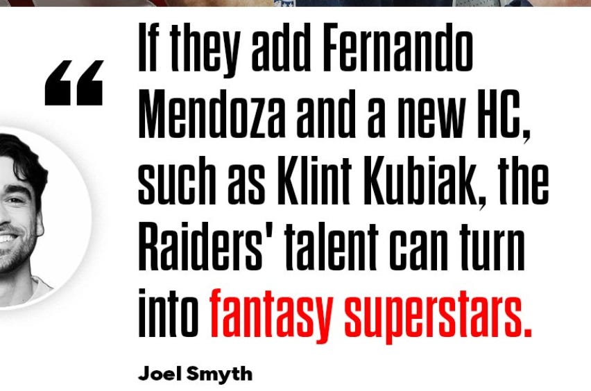For me, the reason I’d be skeptical of the Raiders job is that I’m not sold on Fernando Mendoza, the Heisman/national championship-winning quarterback from Indiana. (I hesitate to even get into this now because I’m not attempting to open up a debate today…I know some of you will think I’m the weird one for that opinion and that’s okay. Maybe I am! But my decision would hinge heavily on how much I like Mendoza and what LV plans to do with the number one pick.)