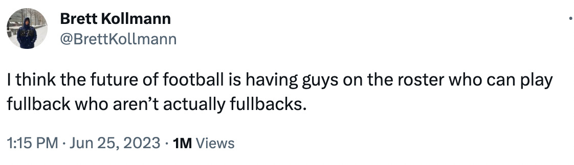 “The 2022 season was the first time in 17 years that fullback useage went up from the previous year in the NFL.”
