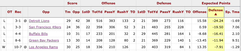 Their sixth-best game in this category (29-20 loss to Giants) has a massive drop-off.