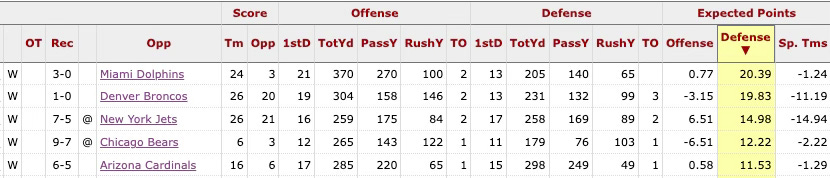 That’s “variance”: The Seahawks were an elite defense against bad offenses and they would only be considered “adequate” against good offenses IF their offense was able to consistently score 30 points. That was not the case. (Which is why I would most definitely focus the offseason on the offense.)