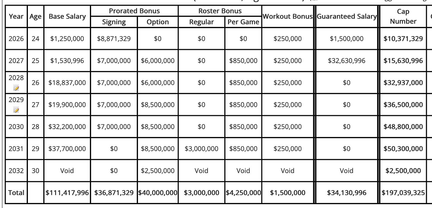 Seattle’s cap commitments will go up significantly in 2027 because of players like JSN, Witherspoon, Murphy, and others, but they will also be shedding cap space: Cooper Kupp, DeMarcus Lawrence, Jarran Reed, and so forth.