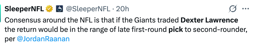 He’s taking that argument out onto the market two years before his contract expires and someone, whether that’s the Giants or someone else, is going to appease his demand for a new deal. Two different New York insiders have said that the trade offers will come in around a borderline first/second round pick: