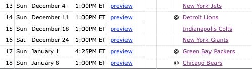 The Rams could go 3-14 and their top pick is going to the Lions. The Rams and Seahawks meet for the first time this season and a win by Seattle would increase their playoff odds but slightly lower their odds of getting a higher draft pick than Detroit. I’ll still take the win, thanks.