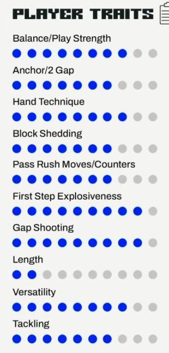 PFF’s scouting report highlights that there were basically no weaknesses in Graham’s career at Michigan as a three-down defensive tackle who can play anywhere on the line: