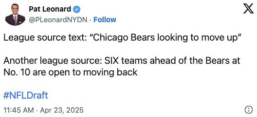 But in a draft class is middle-heavy as 2025, it could be the perfect time to trade up for a prospect who “isn’t a need”.