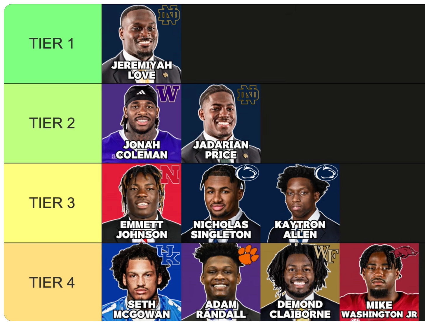 We can probably safely rule out Notre Dame’s Jeremiyah Love, a running back so far out front from the rest of the class that he’s sure to be off the board well ahead of Seattle’s first pick at 32. If literally anything happened that made Jeremiyah Love a Seahawk—that “thing” would have to be very bad news.