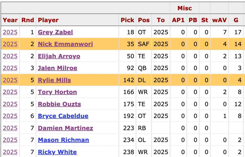 Seattle traded up for Nick Emmanwori at the top of round two and he is as clear of a representation of a “Macdonald-specific acquisition” as there has been since the Seahawks made a head coaching change in 2024. Then Rylie Mills was drafted in round 5, which at the time didn’t feel like he could possibly be the last defensive player who Seattle would pick with so many selections remaining.