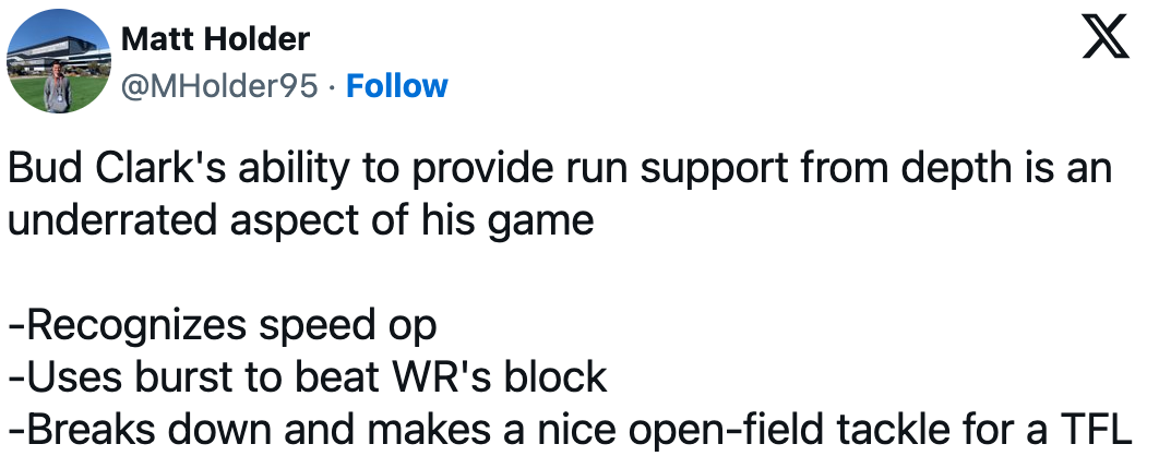 I’ve just got a sense that Bud Clark is a name we need to watch in the draft. The formula for a Seattle mid-round pick is there.