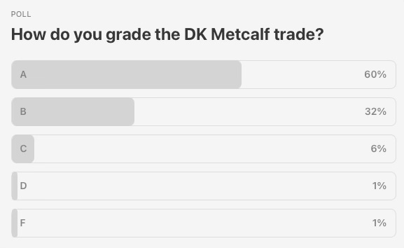 This is the most approved single move of the offseason for John Schneider: An overwhelming 60% of you voted “A” for trading DK Metcalf to the Steelers for a second round pick.