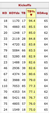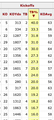 Finding a good kicker is easier said than done. But I’ve been mentioning Myers as a 2026 cap casualty candidate ($5m savings) for months already and I wanted the Seahawks to sign Jake Bates a couple of years ago. Speaking of kickers, you guys wanna see a dead body? Here are the touchback rate leaders in 2024: