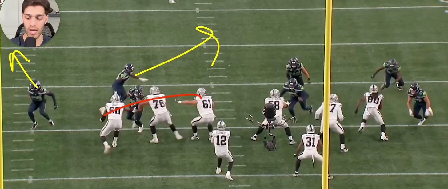 Mike Macdonald has been called the best defensive coordinator in the NFL who is also the head coach and Thursday’s win over the Las Vegas Raiders was an opportunity for him to prove those opinions are accurate without even having his starters available. SumerSports’ Shawn Syed posted a crisp 6-minute breakdown of Nehemiah Pritchett’s interception off of Aidan O’Connell in the second quarter that is just one of the film study videos in this article that Seahawks fans should check out today:
