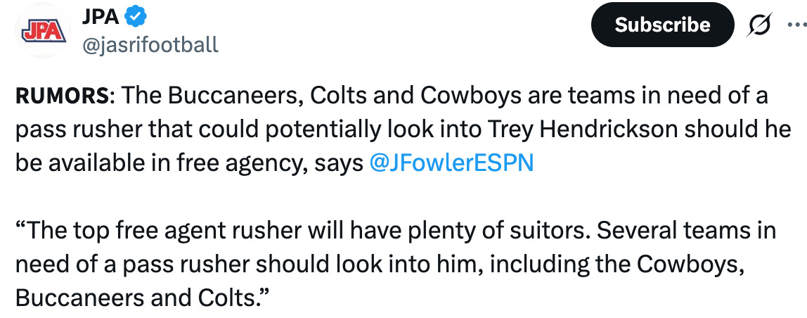 Basically it sounds like a team was willing to trade nothing for Trey Hendrickson by essentially renting him for the same compensatory pick they could probably get for him as a free agent loss.