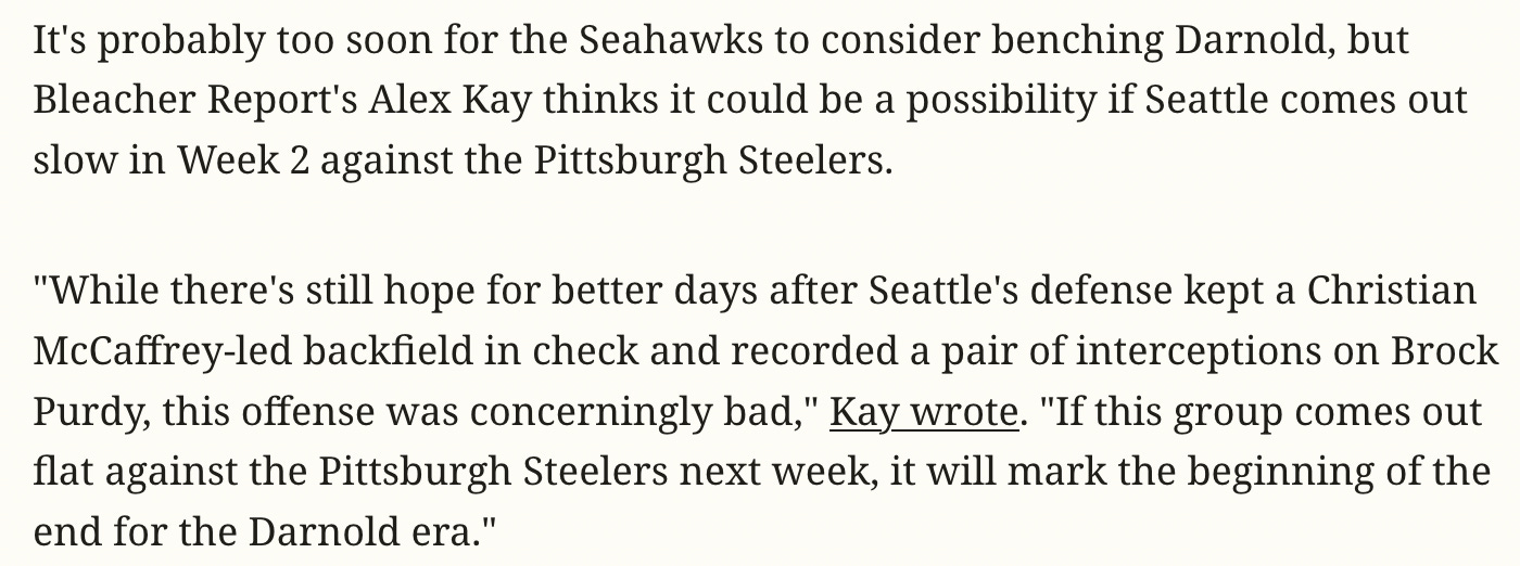 I saw a YouTube thumbnail that claimed that Seattle lost the Super Bowl on Day 1 of Free Agency. Yeah right. Clickbait 10. Quality Analysis 0.