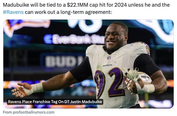 Scratch Justin Madubuike’s name off of Mike Macdonald’s requested free agents list, if it was even on there to begin with. The Baltimore Ravens gave Madubuike the franchise tag, all but guaranteeing his stay after a breakout season with Macdonald as the defensive coordinator in 2023. What the tag for Madubuike does for the Seahawks instead is open up Baltimore’s other free agents for a potential reunion with Macdonald, a consideration that Seattle fans have to take seriously when the market is open next week.