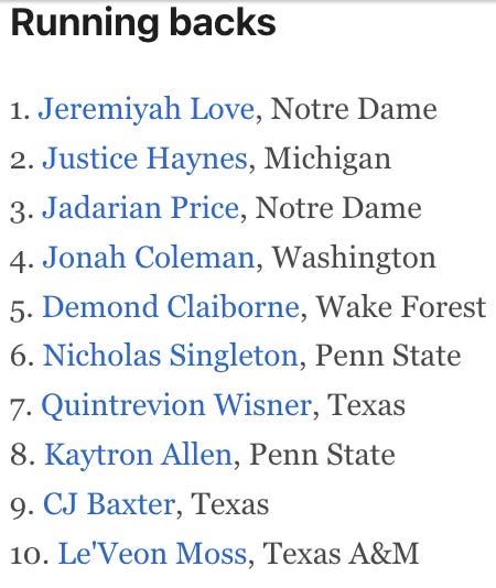 Here are Mel Kiper’s top-10 backs for 2026 and if you hate that name for some reason, don’t worry about the order…this is just 10 names to know:
